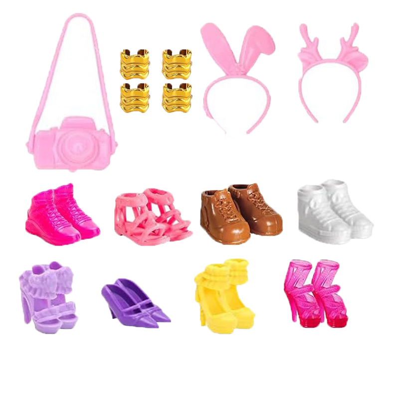 Rozbudź kreatywność dziecka dzięki bogatemu zestawowi modnych ubranek, butów i akcesoriów dla lalek.