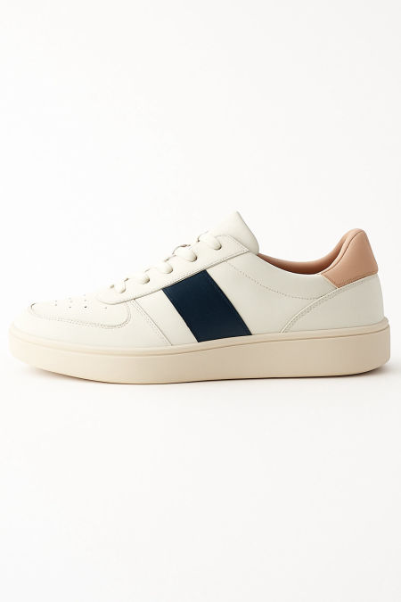 Vanilla Navy to sneakersy, które łączą klasyczną elegancję z nowoczesnym twistem. Kremowa cholewka w połączeniu z wyrazistym, granatowym paskiem tworzy subtelny kontrast, który przyciąga wzrok i nadaje stylizacjom wyrafinowanego charakteru. To buty stworzone dla tych, którzy cenią prostotę, ale nie boją się detalu.